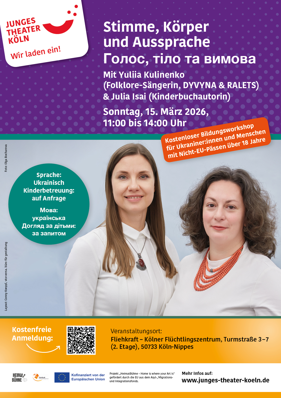 Durch ukrainische Folklore, inneren Dialog und persönliches Storytelling entsteht ein geschützter Raum für Austausch, Erinnerung und Zukunftsperspektiven.